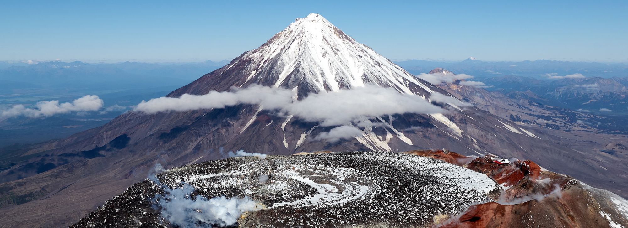 С вертолета вам откроются фантастические виды на вулканы Камчатки.
