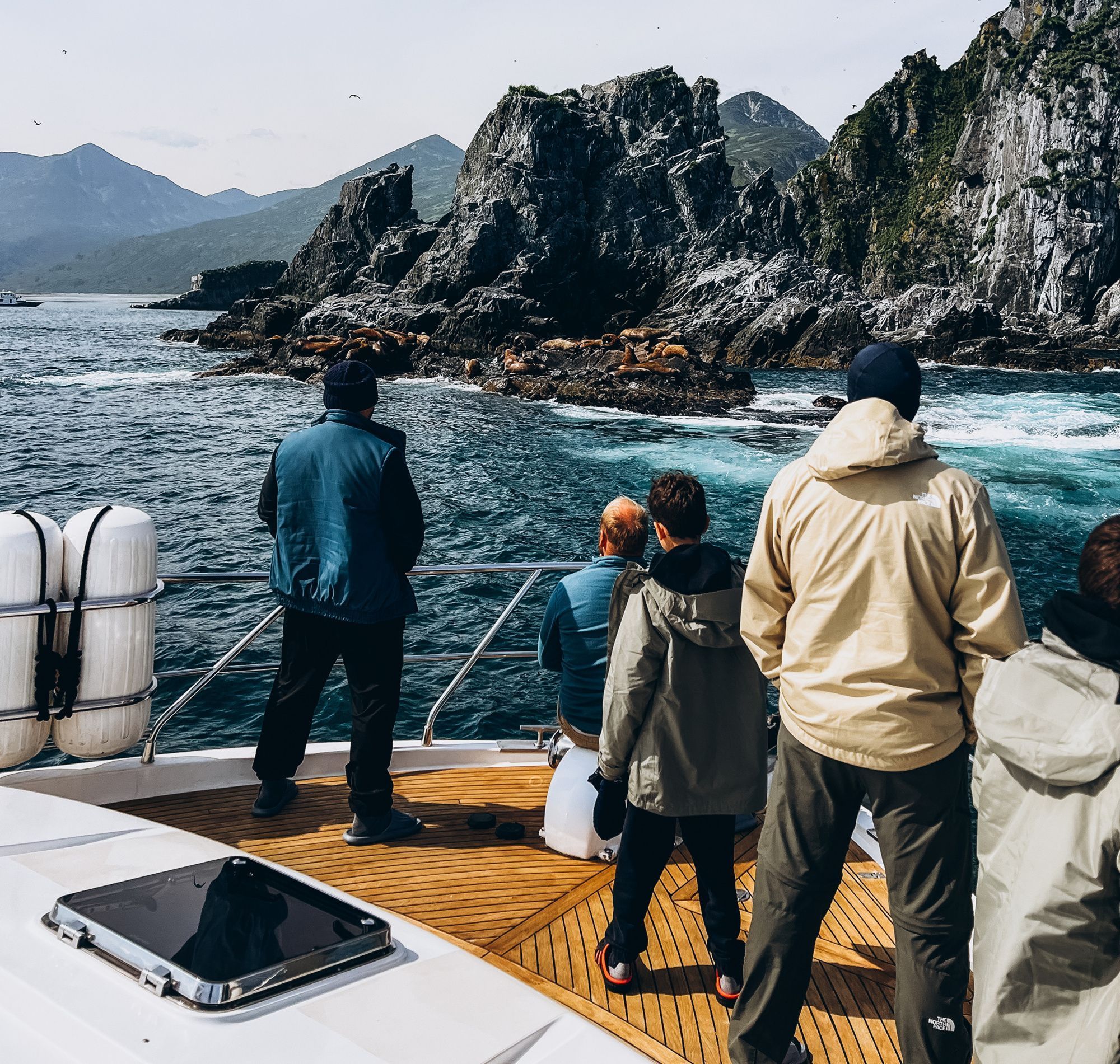 Переход из порта к бухте Русской занимает около 4 часов. По пути вы остановитесь у легендарных скал Три Брата, увидите птичьи базары острова Старичков, пройдете мимо бухт Саранная, Вилючинская, Жировая и Фальшивая. Во время круиза велика вероятность наблюдения за косатками, которые иногда целыми семьями появляются в непосредственной близости от катера
